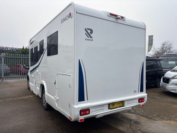 - Rimor Evo 66 2023 A 4-berth motorhome The layout consists of a rear double island bed An electric drop-down double bed at the front Separate shower cubicle and bathroom to the rear of the van Kitchen unit equipped with 3-burner hob, sink, and a 141L fridge…