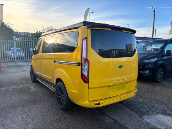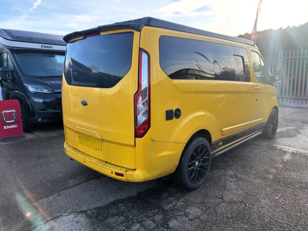 - Ford Transit Custom LWB 2023 4 berth Campervan There is a pull-out rock and roll bed that sleeps 2 The roof pops up to sleep 2 The kitchen is well equipped with a 2-burner gas hob, sink, microwave and fridge