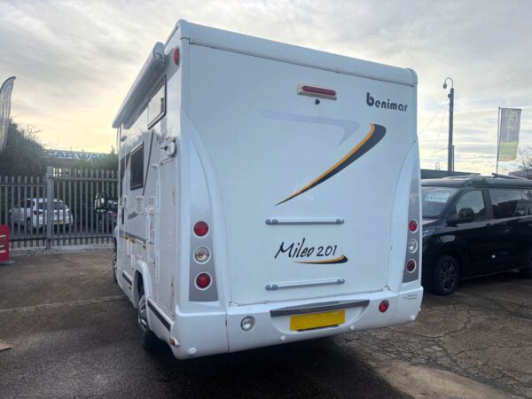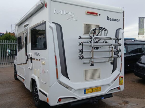 - Benimar Mileo 201 2015 A 3-berth motorhome The layout consists of a rear fixed transverse double bed There is a front dinette area that converts to a single bed The central kitchen is equipped with a microwave, Dometic fridge freezer, Thetford oven and grill, 3-burner hob,…