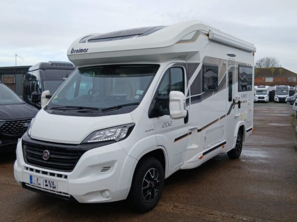- Benimar Mileo 202 2017 A 4 berth morothome The layout consists of a front dinette which converts to a double bed There is an electric drop-down double bed above the dinette The rear kitchen is spacious and well equipped with a Thetford oven and grill, 3…