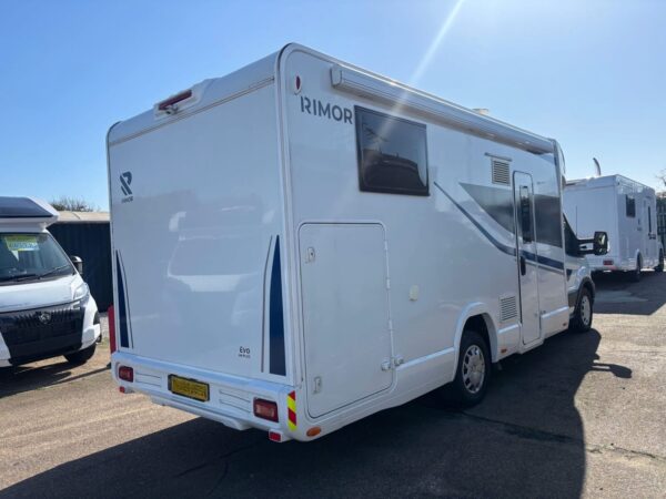 - Rimor Evo 66 2022 A 4-berth motorhome The layout consists of a rear double island bed An electric drop-down double bed at the front Separate shower cubicle and bathroom to the rear of the van Kitchen unit equipped with 3-burner hob, sink, and a 141L fridge…