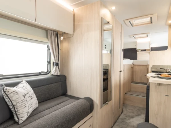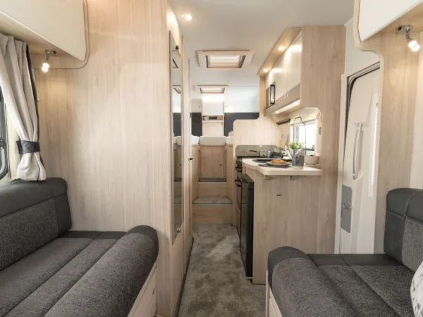- The Autoquest Apex 115 mirrors the GTV 115 layout with an end-kitchen and parallel lounge that transforms into a double bed. 2 Berth 3,500 KG / 69 CWT