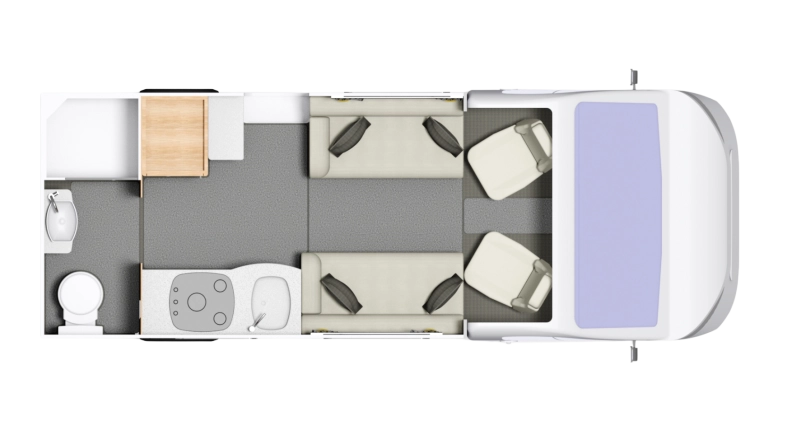 - With a fixed island double bed and a front dinette that converts into extra sleeping space. 4 Berth 3,500 KG / 69 CWT