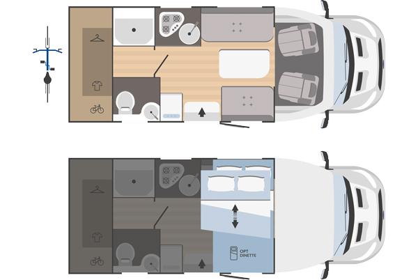 - Rimor Kilig 77 – 2026 A 5 berth motorhome with 5 travel seats. Consists of double bed rear dinette, a front & rear drop-down bed and a Front & rear dinette. Kitchen unit equipped with 3 burner hob, sink, and a 141L fridge with freezer compartment.…