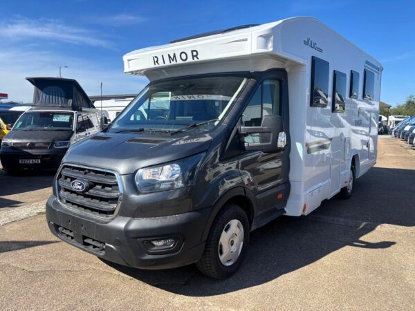 - Rimor Kilig 69 2026 A 5 berth motorhome with 5 travel seats. Consists of a rear double island bed, an electric drop-down double bed at the front and a L shape front dinette. Kitchen unit equipped with 3 burner hob, sink, and a 141L fridge with…