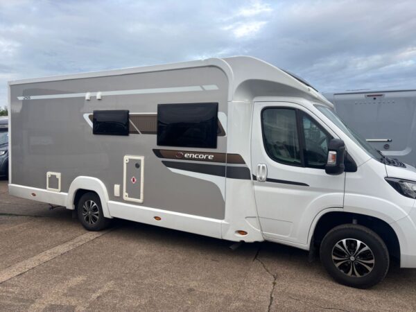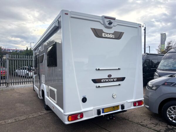 - Elddis Encore 255 2019 A 4-berth motorhome with a rear-fixed French double bed. The front lounge area converts to a comfortable double bed. Well-equipped kitchen with 4 burner hob, Thetford oven and grill, sink, microwave, and Dometic fridge freezer. Rear bathroom with shower cubicle, Thetford cassette…