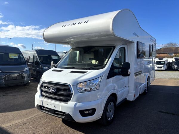 - Rimor Evo 95 Plus (2023) Registered April 2023 A 5-berth motorhome with 5 travel seats. Consists of rear fixed single beds that can convert into a double bed, a spacious front dinette that converts into a single bed, and a Front elecric drop-down double bed. Kitchen…