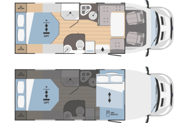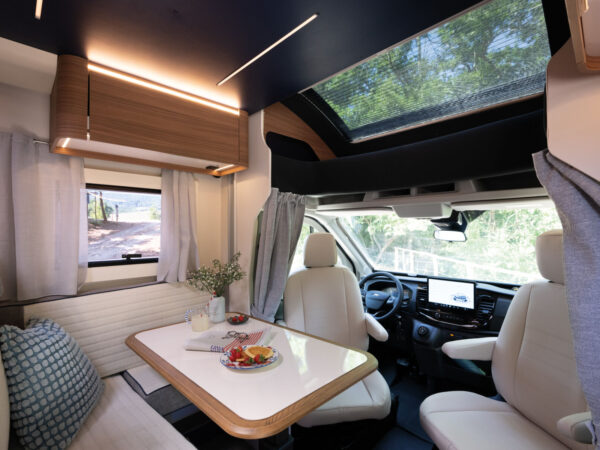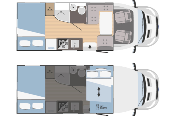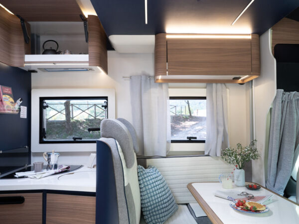 - Rimor Evo 95 2023 5 Berth. 5 travel seats. Electric drop down double bed in the front of the van. Dinette area converts into a single bed. Rear single beds that can convert into a double bed. The kitchen area is equipped with a 3 burner…