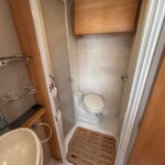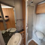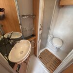 - The rear bathroom is spacious is with a Thetford cassette toilet, vanity washbasin and shower