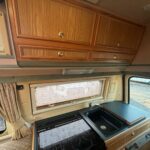 - There is a rear kitchen area which is equipped with a 3 burner hob, oven and grill, sink and Dometic fridge freezer