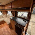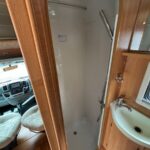 - Bathroom with separate shower cubicle, Thetford cassette toilet, and vanity washbasin