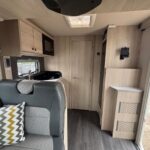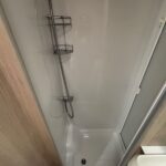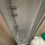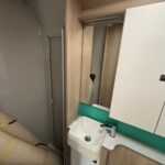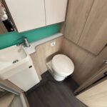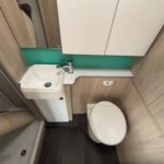 - The rear washroom is spacious and consists of a shower cubicle, vanity washbasin and Thetford cassette toilet