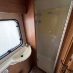 - The washroom consists of a Thetford electric flush toilet, vanity washbasin and a separate shower cubicle