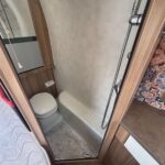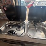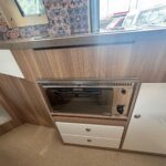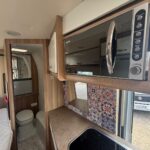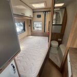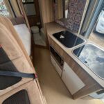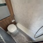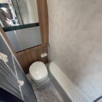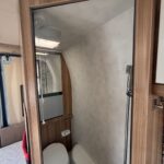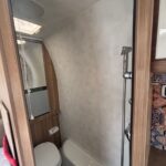- The rear washroom consists of a Thetford cassette toilet, pull-down vanity washbasin and a shower