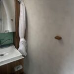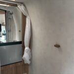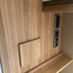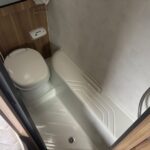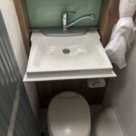 • The rear washroom consists of a Thetford cassette toilet, pull-down vanity washbasin and a shower