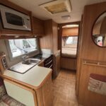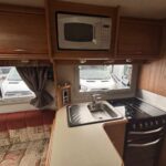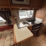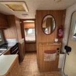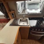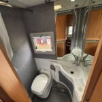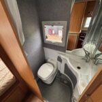 - The rear wet room is equipped with a Thetford cassette toilet, shower and vanity washbasin