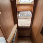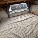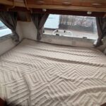 - The layout consists of a rear fixed transverse double bed with garage space beneath