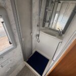 - The bathroom to the back of the van is spacious and consists of a shower cubicle, Thetford cassette toilet and vanity washbasin