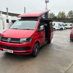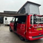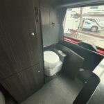 - The kitchen area consists of a sink, 2 burner hob, and a Dometic fridge with freezer compartment, and Dometic grill