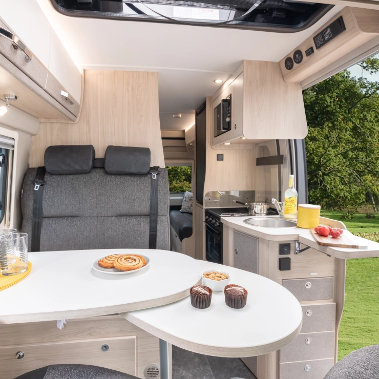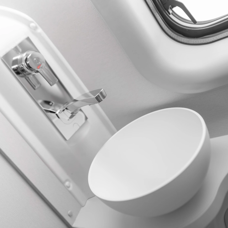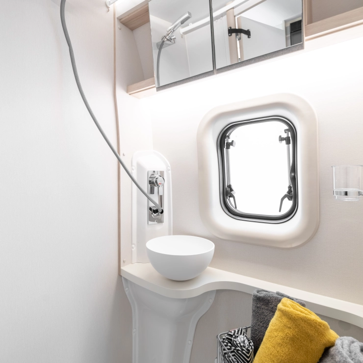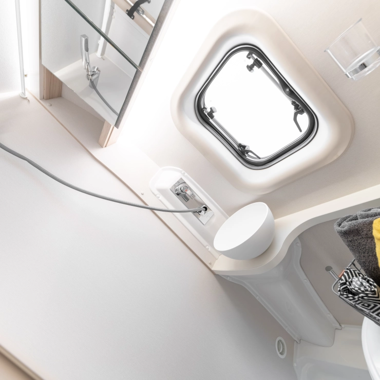 • Conveniently placed 12V control panel, incorporating water pump, lighting circuits, fresh water tank level and waste warning light when full