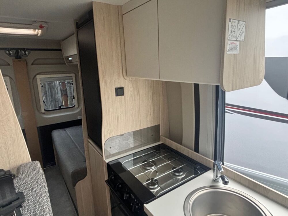 • Thetford Triplex oven, grill and 3-burner gas hob (with auto-shut-off safety function) and glass lid creating additional work surface
