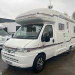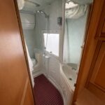 - Washroom with a Thetford cassette toilet, shower, and vanity washbasin