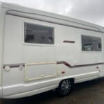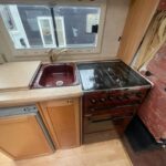 - The kitchen area consists of a 4 burner hob, Caprice oven, and grill, Electrolux fridge with a freezer compartment and sink