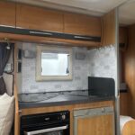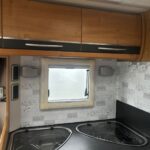 - The kitchen is well equipped with a 3-burner hob, Thetford oven and grill and fridge freezer