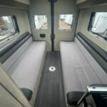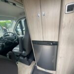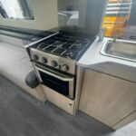 - The kitchen is well equipped with a 3 burner hob, Triplex oven and grill, sink, and a Dometic fridge with freezer compartment