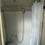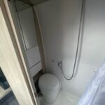 - Wetroom consisting of a shower, Thetford cassette toilet, and push button to unfold vanity washbasin