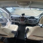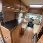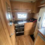 - Rear washroom with shower cubicle, Thetford cassette toilet, and vanity washbasin