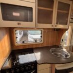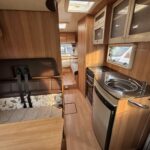 - The central kitchen is spacious and well equipped with a 4 Thetford 4 burner hob oven and grill, sink, fridge freezer and microwave