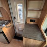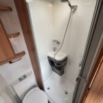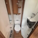 - There is a spacious and well-equipped bathroom with a shower cubicle, vanity washbasin and Thetford cassette toilet