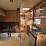 - There is a front electric drop-down double bed over the dinette