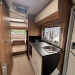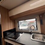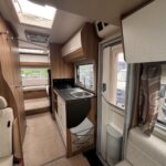 - The central kitchen is spacious and well equipped with a 4 burner hob, oven and grill, sink, Dometic fridge freezer and microwave