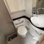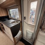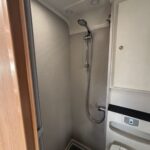 - The bathroom is spacious with a separate shower, Thetford cassette toilet and vanity washbasin