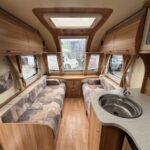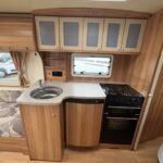 - The kitchen is equipped with a sink, 4 burner combi hob, Thetford oven and grill and a microwave