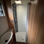 - The rear bathroom has a Thetford cassette toilet, washbasin and a seperate shower cubicle