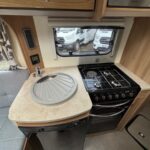 - Well-equipped central kitchen with 4 burner hob, Thetford oven and grill, Dometic fridge freezer, microwave and sink