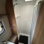 - Rear bathroom with separate shower cubicle, washbasin, and Thetford cassette toilet