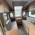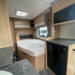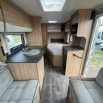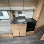 - The kitchen is well equipped with a Thetford 4 burner hob oven and grill, sink, Dometic fridge with freezer compartment, and a Dometic microwave