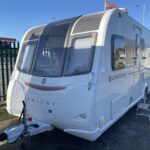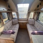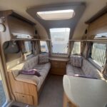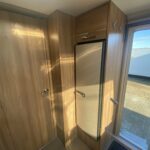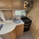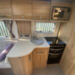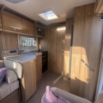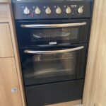 - Kitchen equipped with sink, microwave, Thetford oven, grill, 4 burner combi hob, and large Dometic fridge freezer