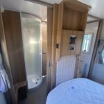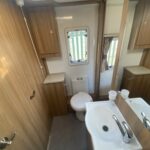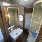 - Central bathroom with shower cubicle, vanity washbasin, and Thetford cassette toilet