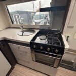- The rear kitchen is spacious and well equipped with a Thetford 3 burner hob, oven and grill, sink, microwave and Thetford fridge freezer