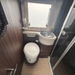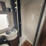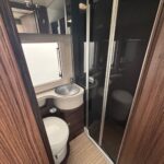 - The washroom is spacious with a separate shower cubicle, Thetford cassette toilet and vanity washbasin