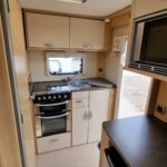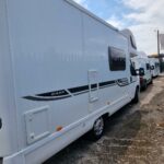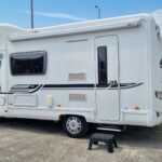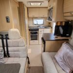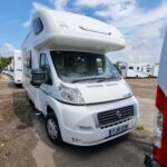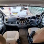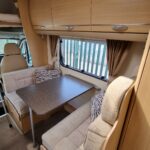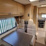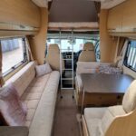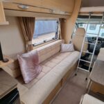 This 4 berth motorhome comes equipped with a front lounge/dining area with a large bench seat that makes it into a double bed, and an Over cab double bed that folds up to allow extra headspace. The kitchen comes equipped with a Thetford Oven/Grill, 4 burner hob (3 gas, 1 electric), Thetford fridge/freezer compartment, and a Sanyo microwave. This motorhome also comes with a wetroom which includes a shower, sink, and a Thetford cassette toilet. This Bessacar E435 also comes with tons of extras for example a reverse camera, 2 x Bike rack, Remi blinds, 12v TV/DVD, JVC Cd player/Aux, and much more!