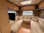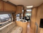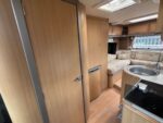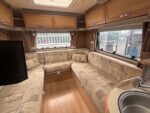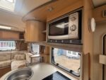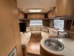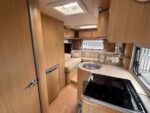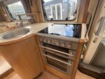 - The central kitchen is well-equipped with a 4-burner hob, oven and grill, Microwave, sink and a Thetford fridge freezer