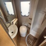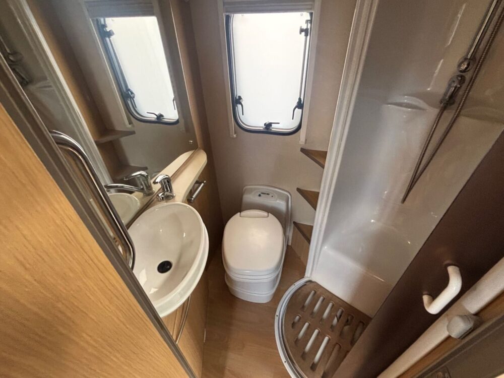 - The bathroom is spacious and consists of a shower cubicle, Thetford cassette toilet and vanity washbasin