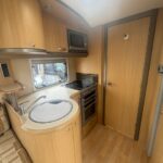 - Kitchen is equipped with a sink, oven and grill, 4 combi hob, Sharp microwave and a Thetford XL fridge freezer