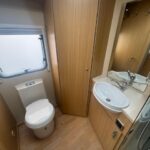 - Bathroom equipped with a Thetford cassette toilet, vanity washbasin and shower cubicle